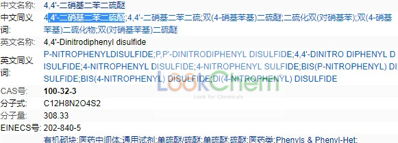 Disulfide,bis(p-nitrophenyl) (7CI,8CI); 4,4'-Dinitrodiphenyl disulfide;Bis(4-nitrophenyl) disulfide; Bis(p-nitrophenyl) disulfide; Di(p-nitrophenyl)disulfide; Di-4-nitrophenyl disulfide; NSC 4566; NSC 677446;p,p'-Dinitrodiphenyl disulfide; p-Nitrophenyl disulfide