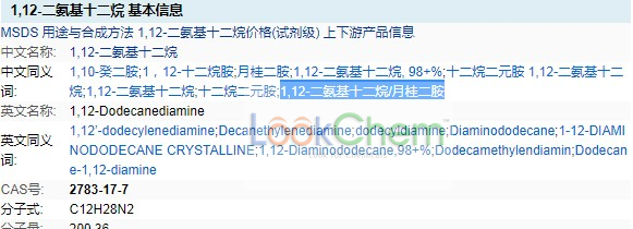 1,12-Diamino-n-dodecane;1,12-Diaminododecane; 1,12-Dodecamethylenediamine; 1,12-Dodecylenediamine;1,12-n-Dodecanediamine; Dodecamethylenediamine; NSC 55050; NSC 59861