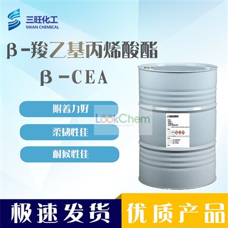 β-羧甲基丙烯酸酯是反应性丙烯酸双键易于在乳液聚合和辐射固化体系中与乙烯类及丙烯酸类单体共聚 ,具有较低的玻璃化温度能有效地促进粘结力,改善乳液的稳定性,具有较长的侧羧酸链给予良好的挠曲性,促使聚合物和底材间产生更有效的相互作用,从而增强粘结力及剥离强度,这种强度随时间变长有增加的趋势。β-CEA和氨基、羟基、环氧基、异氰酸酯官能团等结构发生交联反应,在水性、溶剂性和100%固含体系均适用,低Tg值(37°C),可以用来调节涂料硬度或者改善压敏胶的粘结强度。