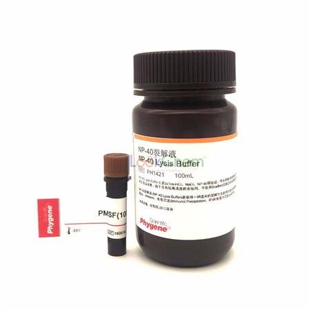 NP-40裂解液 (NP-40 Lysis Buffer)是采用一种温和的裂解方法获得总蛋白的裂解液。所获得的蛋白质可以用于PAGE电泳、Western、免疫沉淀(Immunol Precipitation,IP)和免疫共沉淀(co-IP)等。
