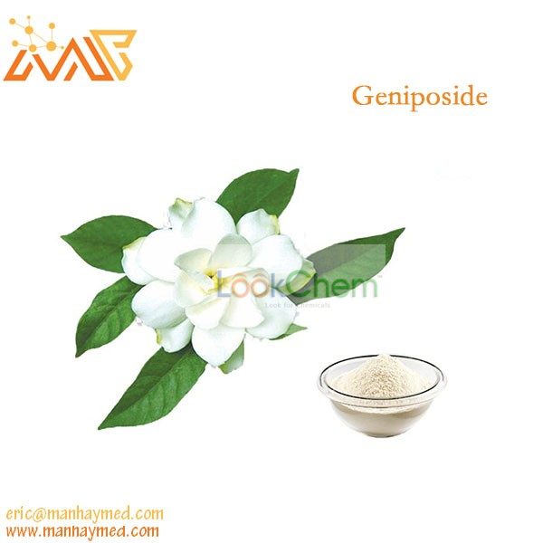 GENIPOSIDE;Methyl (1R,2S,6S)-9-(hydroxymethyl)-2-[(2S,3R,4S,5S,6R)-3,4,5-trihydroxy-6-(hydroxymethyl)oxan-2-yl]oxy-3-oxabicyclo[4.3.0]nona-4,8-diene-5-carboxylate;Methyl (1R,2S,6S)-9-(hydroxymethyl)-2-[(2S,3R,4S,5S,6R)-3,4,5-trihydroxy-6-(hydroxymethyl)oxan-2-yl]oxy-3-oxabicyclo[4.3.0]nona-4,8-diene-5-carboxylate;glucopyranosyloxy)-1,4a,5,7a-tetrahydro-7-(hydroxymethyl)-,methyl ester, (1S,4aS,7aS)-;(1S)-1α-(β-D-Glucopyranosyloxy)-1,4aα,5,7aα-tetrahydro-7-hydroxymethylcyclopenta[c]pyran-4-carboxylic acid methyl ester;1α-(β-D-Glucopyranosyloxy)-1,4aα,5,7aα-tetrahydro-7-(hydroxymethyl)cyclopenta[c]pyran-4-carboxylic acid methyl ester;Geniposide ,98%;Olea europaea L