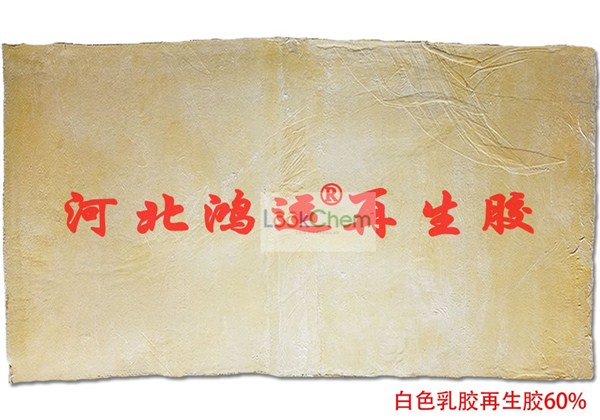 白色乳胶再生胶的含胶量是60%,拉伸强度是6.8MPA,扯断伸长率是420%,邵氏硬度是41HA,本产品是经过欧盟环保认证的。