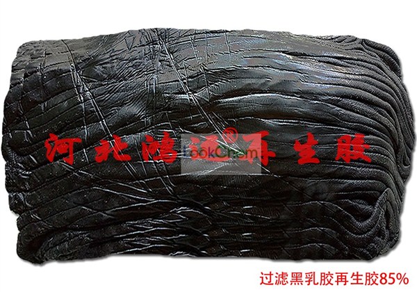 河北鸿运再生胶厂的黑色乳胶再生胶的特点是细度高,无味道,无杂质,扯断伸长率高,弹性好。HYS7J8A