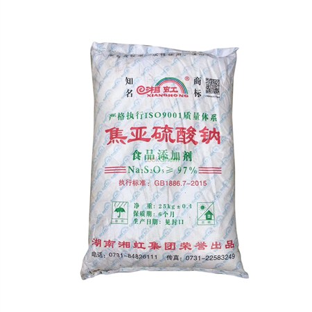 焦亚硫酸钠比亚硫酸盐有更强烈的还原性,作用与亚硫酸钠相似。我国规定可用于蜜饯、饼干、食糖、冰糖、饴糖、糖果、葡萄糖、液体葡萄糖、竹笋、蘑菇和蘑菇罐头,最大使用量0.45g/kg。蜜饯、竹笋、蘑菇及蘑菇罐头、葡萄和黑加仑浓缩汁的残留量(以SO2计)小于0.05g/kg;饼干、食糖、粉丝及其他品种的残留量小于0.1g/kg;液体葡萄糖的残留量不得过0.2g/kg。