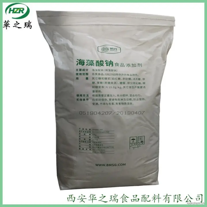 (1)面食品:在生产挂面、鱼面、快餐面及筒子面中加入0.2%-0.5%的藻酸钠,可以明显地增加粘性,防变脆,有效地减少断头率,耐煮、耐泡、不粘条、筋力强、韧度高,口感细腻、润滑、有嚼头。在生产面包等面食、糕点时,加入0.1%-1%的藻酸钠,可以突出地防止老化和干燥,减少落屑,吃起来有筋力,口感好。