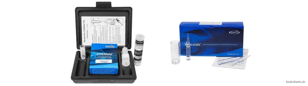 CHEMetrics的测试采用高碘酸盐化学方法来测量可溶性锰化合物,但不能区分各种化合价态。结果表示为ppm(mg / L)Mn 。高锰酸盐(MnO 4)与其他形式的锰相比,用这种试剂产生的颜色大约多25%,引起较高的偏差。如果已知样品仅含有高锰酸盐形式的锰,则将测试结果乘以0.8将提高结果的准确性。