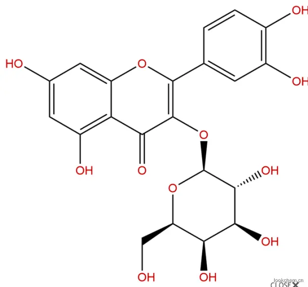- 金丝桃苷; 槲皮素-3-半乳糖甙; 2-(3,4-二羟基苯基)-3-(beta-D-吡喃半乳糖氧基)-5,7-二羟基-4H-1-苯并吡喃-4-酮