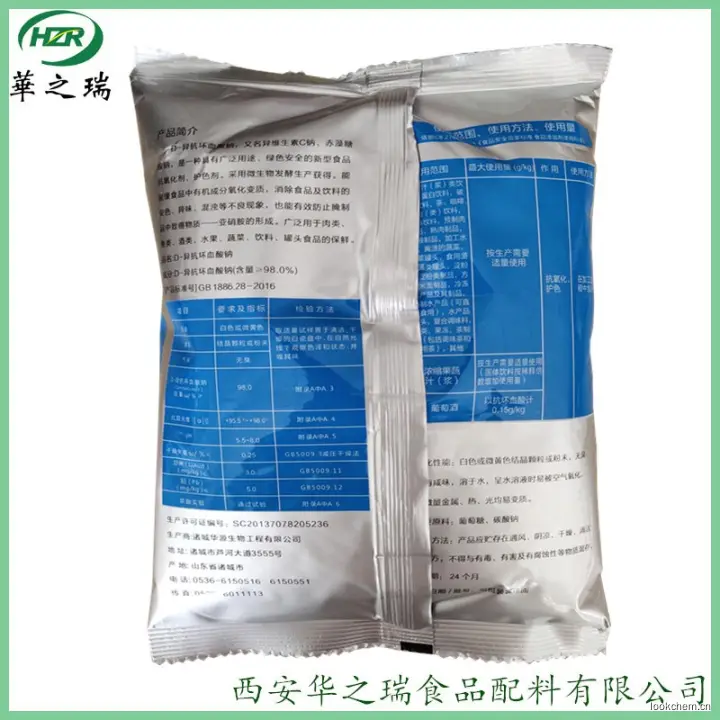 D- 异抗坏血酸钠(d-sodium erythorbate)又名赤藻糖酸钠,广泛用于肉类、鱼类、蔬菜、水果、酒类、饮料及罐头食品的防腐保鲜助色。