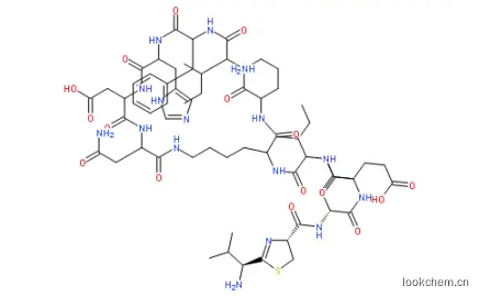 说明:灰白色到浅黄色粉末,易溶于水,溶于乙醇。 C66H103N17O16S MW:1422.69。 Potency,≥ 60 Units/mg。 Store:2-8℃