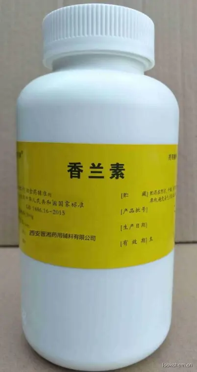 俗称香草粉, 香草醛,云尼拿粉、香草精、香荚兰素。 从芸香科植物香荚兰豆中提取。白色至微黄色结晶或结晶状粉末,微甜。溶于热水、甘油和酒精,在冷水及植物油中不易溶解。香气稳定,在较高温度下不易挥发。在空气中易氧化,遇碱性物质易变色。