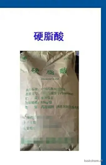 ?硬脂酸YingzhisuanStearic Acid本品系从动、植物油脂中得到的固体脂肪酸,主要成分为硬脂酸(C18H36O2)与棕榈酸(C16H32O2)。含硬脂酸(C18H36O2)不得少于40.0%,含硬脂酸(C18H36O2)与棕榈酸(C16H36O2)总量不得少于90.0%。