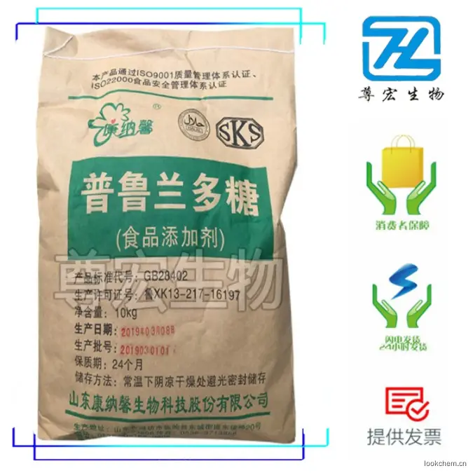 普鲁兰多糖是一种由出芽短梗霉发酵所产生的类似葡聚糖、黄原胶的胞外水溶性粘质多糖,该多糖有两个重要的特性:结构上富有弹性,溶解度比较大。已广泛应用于、食品、轻工、化工和石油等领域。普鲁兰多糖为新增四种食品添加剂产品之一,可在糖果、巧克力包衣、膜片、复合调味科和果蔬汁饮料中用作被膜剂和增稠剂。