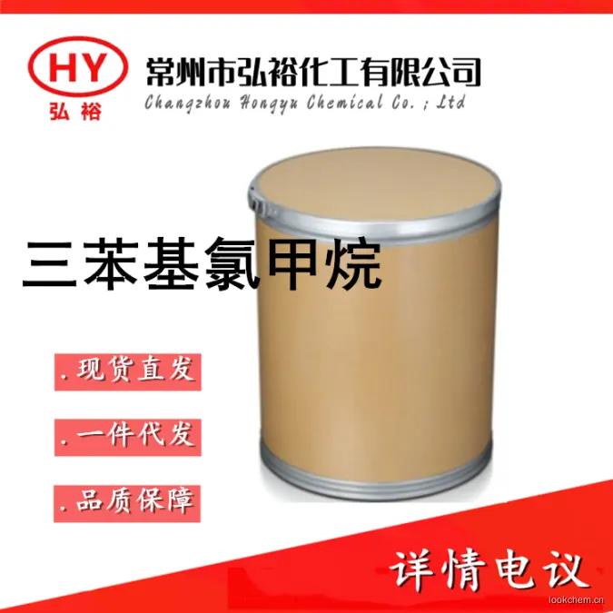 白色晶体,不溶解于水,易溶解于苯、二硫化碳、石油醚,正己烷,微溶解于醇、醚,吸水后变为三苯甲醇,重要的医药中间体。三苯基氯甲烷是医药化工领域中常用的基本有机原料之一,在有机化工与药物合成过程中,可以用作核苷、单糖或多糖等化合物中所带有的伯羟基选择性保护基、以及多肽合成中的基本化学试剂。