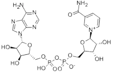 Adenosine5'-(trihydrogen diphosphate), P'®5'-ester with 3-(aminocarbonyl)-1-b-D-ribofuranosylpyridinium hydroxide, inner salt;Pyridinium, 3-carbamoyl-1-b-D-ribofuranosyl-, hydroxide, 5'®5'-ester with adenosine 5'-(trihydrogenpyrophosphate), inner salt (8CI); Adenine-nicotinamide dinucleotide; CO-I;Codehydrase I; Codehydrogenase I; Coenzyme I; Cozymase I; DPN;Diphosphopyridine nucleotide; Enzopride; NAD; NAD+; NSC 20272; Nadide;Nicotinamide-adenine dinucleotide; Oxidized diphosphopyridine nucleotide; b-Diphosphopyridine nucleotide; b-NAD; b-NAD+; b-Nicotinamide adenine dinucleotide