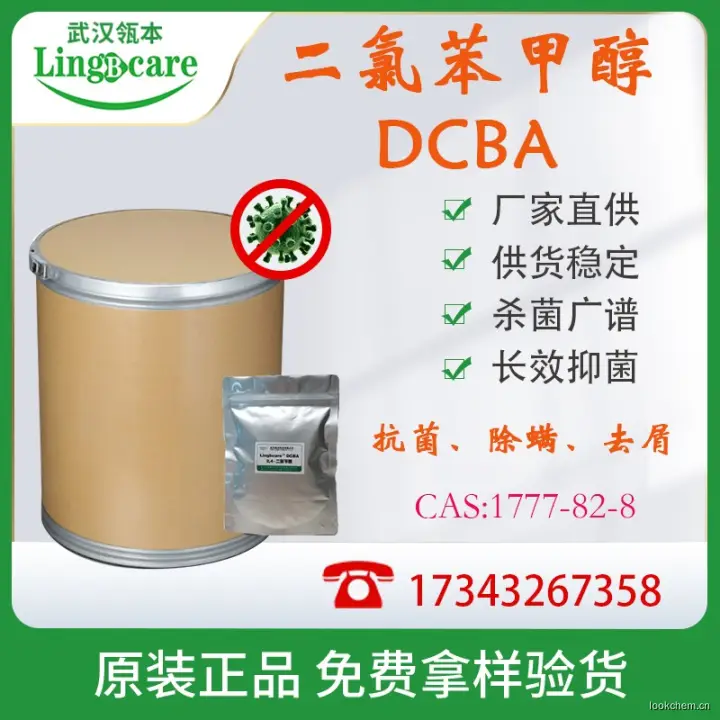 2,4-二氯苄醇它作为一种广谱抗菌剂,其抗菌活性物能与广泛的产品兼容,有好的温度稳定性,适用于广泛的pH范围。2,4-二氯苄醇对广泛的微生物都有作用,对真菌具有最好的抗菌效果。在100~500 ppm的浓度范围内,DCBA能有效地抑制酵母、霉菌和皮肤真菌的生长。在500~2000 ppm的浓度范围内,即能起到抑菌作用。2,4-二氯苄醇的广谱抗菌活性已在不同的应用领域得到了较好的验证。作为一种抗真菌保存剂它被用于个人防护品,医药及家用产品中;作为抗真菌活性物用于脚霜和洗液;作为杀菌活性剂用于咳嗽糖,漱口剂配方和皮肤防腐剂中;还可用于药物、化妆品和工业产品保存,有效的杀真菌,具有极好的安全性;也可以与其它杀菌剂复配使用。