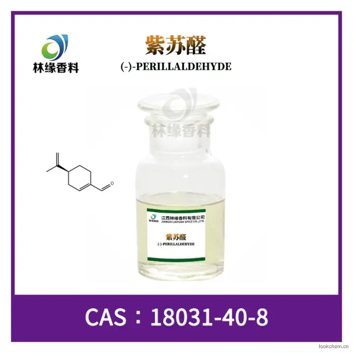 简介:紫苏醛{学名[4-异丙烯基-1-环己烯基]甲醛},又称二氢枯名醛,分子式为C10H14O,是一种具有樱桃、油脂和枯茗似香气的光学活性萜类化合物,是天然紫苏油的特征香气成分,存在于天然紫苏油、莲叶桐和香柠檬油中。
