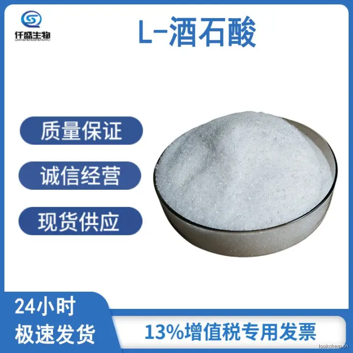 L-酒石酸广泛用作饮料和其他食品的酸味剂,用于葡萄酒、软饮料、糖果、面包、某些胶状甜食。利用其光学活性,作为化学拆分剂;还可以作为手性原料用于酒石酸衍生物的合成;利用其酸性,作为涤纶织物树脂整理的催化剂,谷维素生产的PH调节剂;利用其络合性,用作电镀、脱硫、酸洗以及化学分析;利用其还原性,用作化学制镜的还原剂。照相的显影剂。还能与多种金属离子络合,可作金属表面的清洗剂和抛光剂。