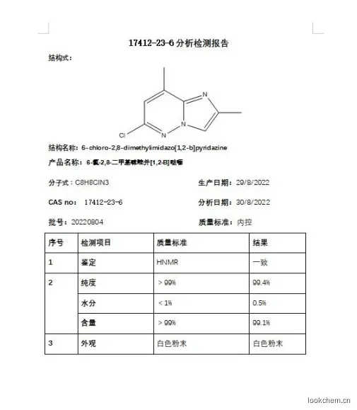 化学名:6-氯-2,8-二甲基咪唑并[1,2-B]哒嗪