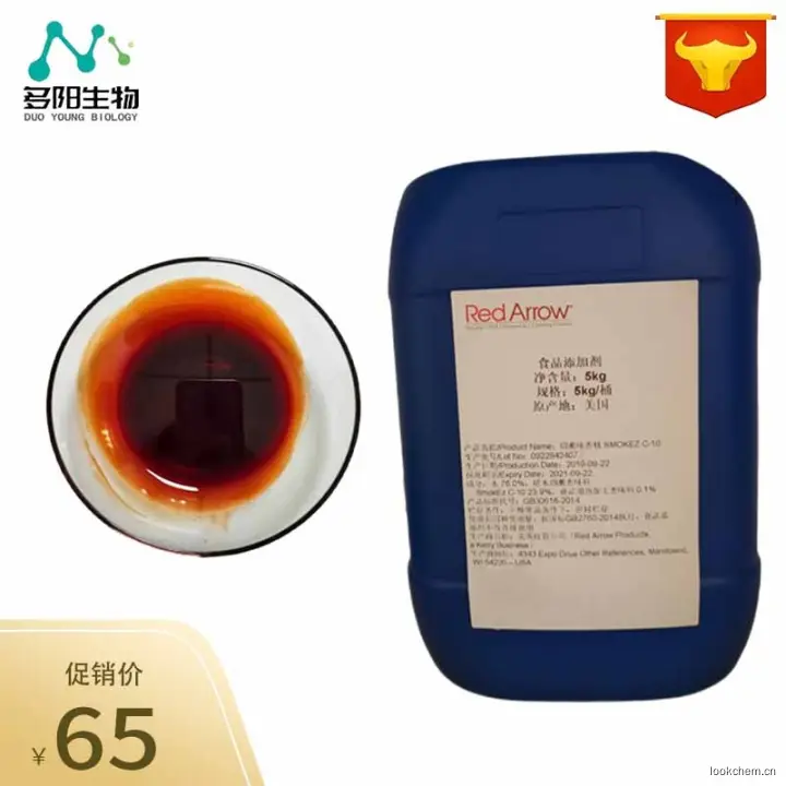 烟熏液是采用硬质果木干山楂果核为基础原料,经高温分解、干馏制成的一种具有天然烟熏风味的香味料。在生产制作工程中不添加加任何化学成分。
