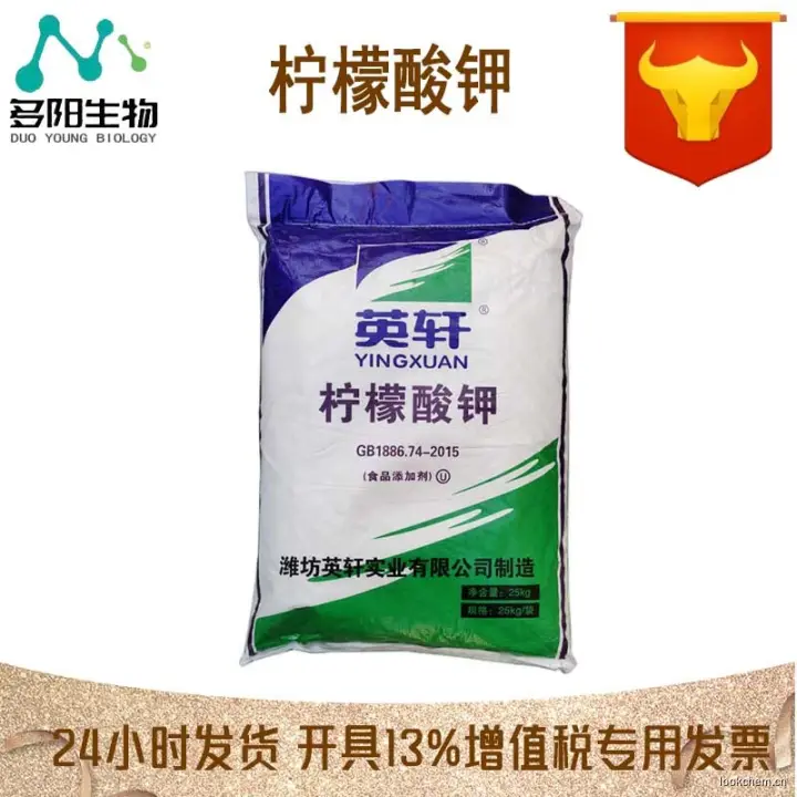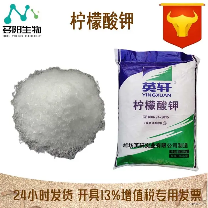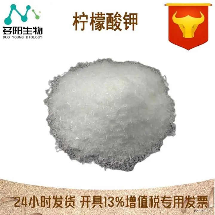 柠檬酸钾,又名枸橼酸钾、柠檬酸三钾。 分子式:K3C6H5O7·H2O,分子量:324.4,性状:无色结晶或白色结晶性粉末,有微引湿性,易溶于水,缓溶于甘油,不溶于醇,味咸而凉。 比重:1.98,用途:主要用作分析试剂,食品添加剂,在制药工业上用碱性钾盐,用作低钾血症及碱化尿液,也可制成高效复合肥料,还可用于造纸、镀金等行业。