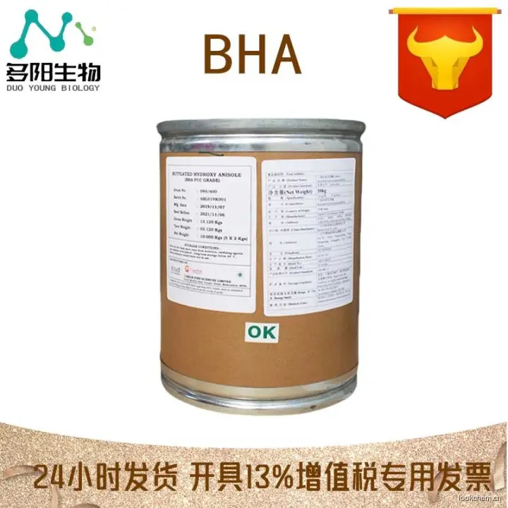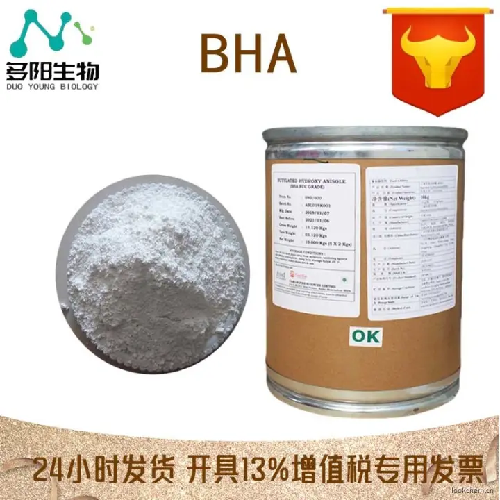 丁基羟基茴香醚(BHA),白色或微黄色结晶状物,高浓度是略有酚味,易溶于乙醇、丙二醇和油脂,不溶于水。BHA对热稳定,在弱碱条件下不易被破坏,与金属离子作用不着色。