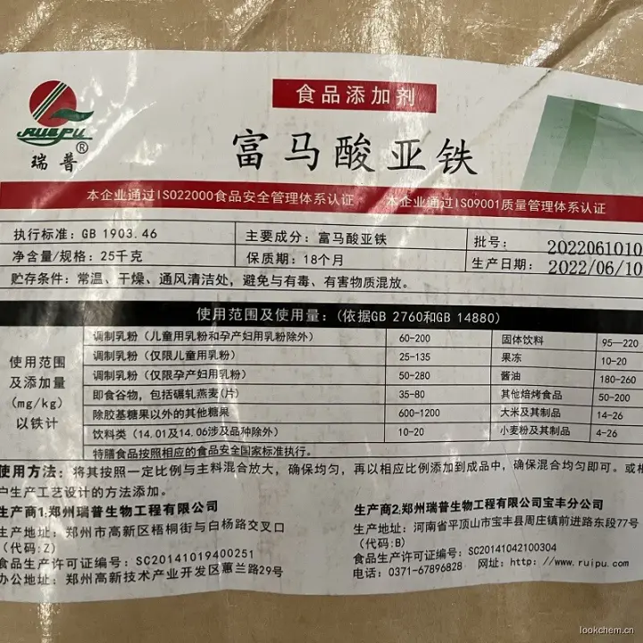- 2-Butenedioicacid (E)-, iron(2+) salt (1:1); Fumaric acid, iron(2+) salt (1:1) (8CI); Ironfumarate (Fe(O4C4H2)) (6CI,7CI); Cpiron; Erco-Fer; Ercoferro; Feostat; Fepstat;Feroton; Ferrofume; Ferronat; Ferrone; Ferrotemp; Ferrous fumarate; Ferrum;Fersamal; Firon; Fresamal; Fumafer; Fumar F; Fumiron; Galfer; Heferol; Hemoton;Ircon; Iron fumarate; Iron fumarate (Fe(C4H2O4)); Iron(II) fumarate; Meterfer;One-Iron; Orgasal; Palafer; Toleron; Tolferain; Tolifer