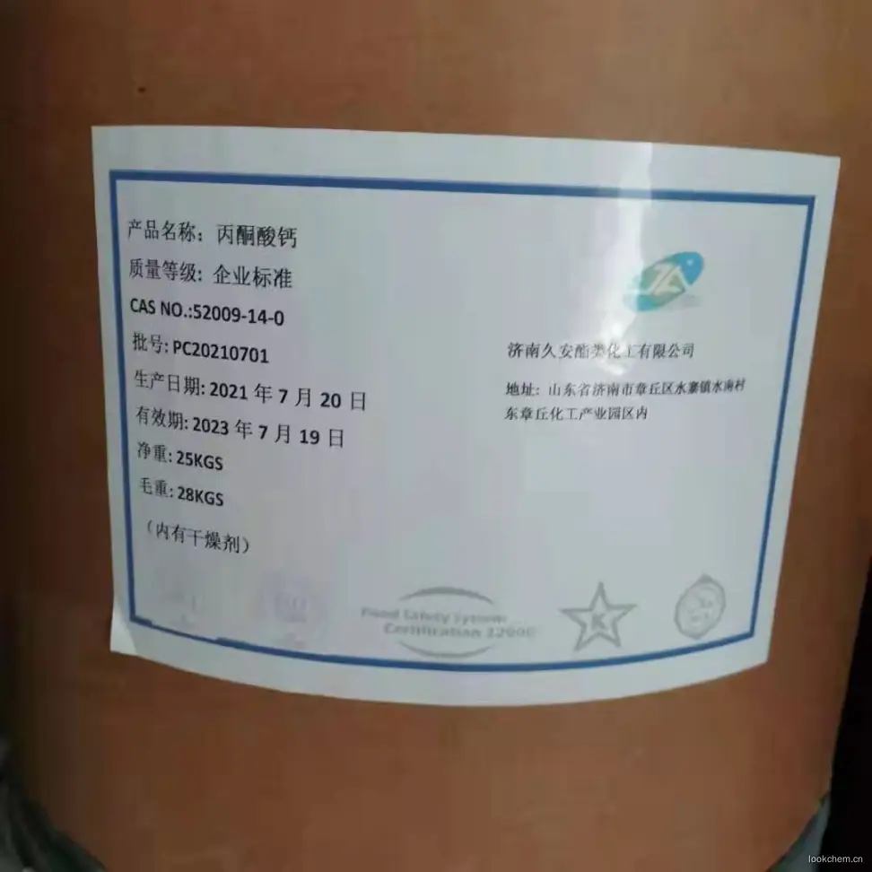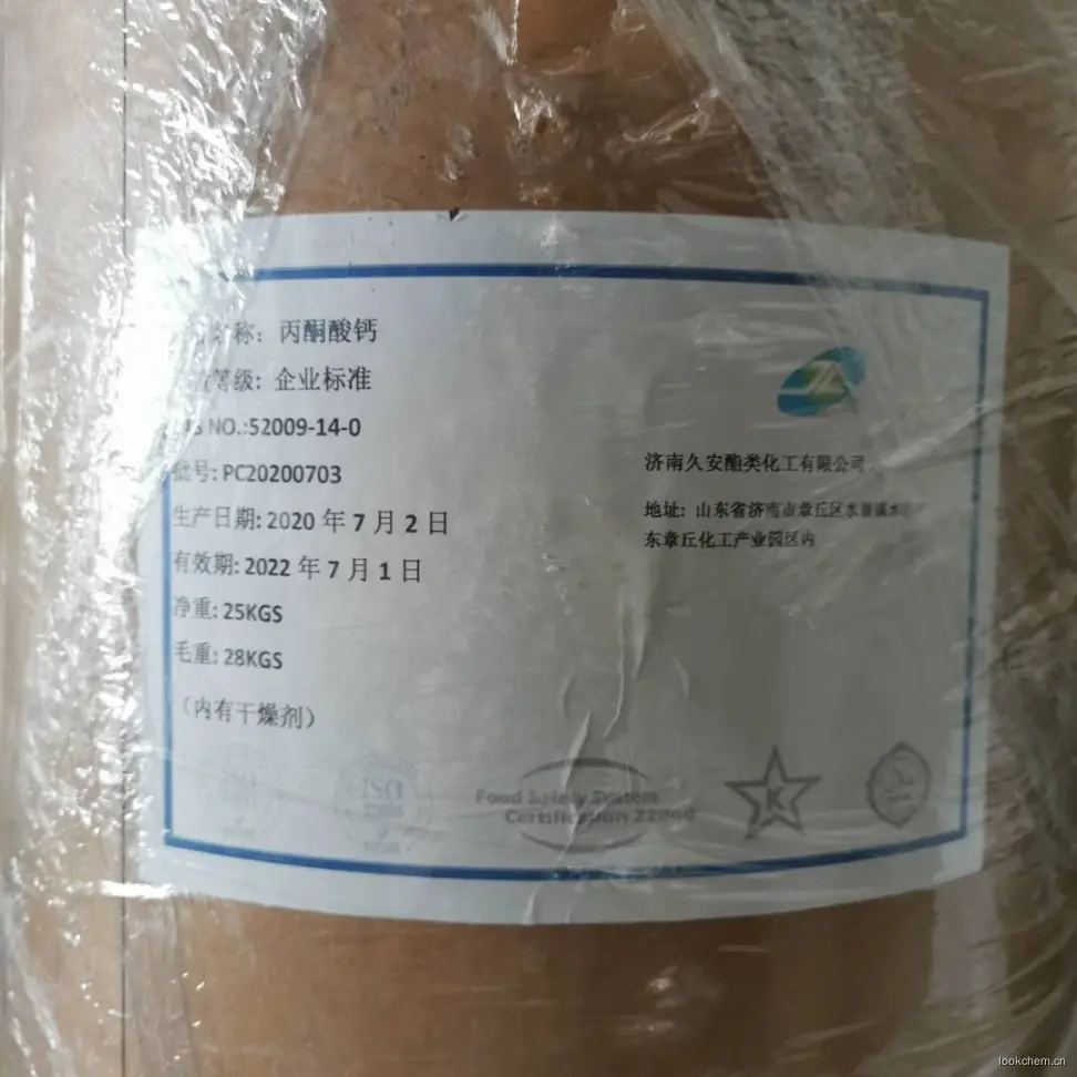 丙酮酸钙是丙酮酸的钙盐,很稳定。丙酮酸却极不稳定,极易被氧化,弱氧化剂Fe与H2O2能把丙酮酸氧化成乙酸并放出二氧化碳。丙酮酸是有机体内糖类代谢过程中的中间产物,也是蛋白质类与脂类代谢必经的中转站,它在自然条件下为无色有刺激性气味的液体,沸点165℃(分解),易溶于水,除了具有羟酸与酮的典型性质外,还具有a-酮酸的特性,丙酮酸是z简单的a-酮酸(属于羟基酸)。丙酮酸钙是丙酮酸的钙盐