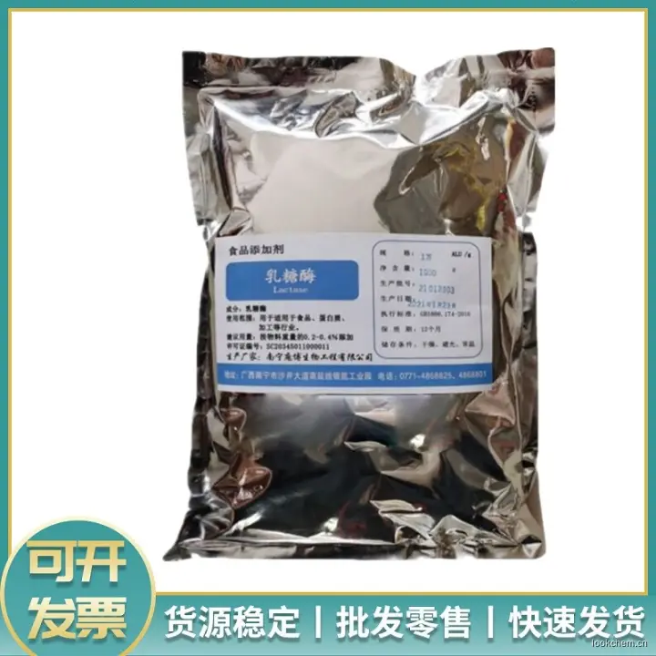 可作为酶制剂。主要用于乳品工业。可使低甜度和低溶解度的乳糖转变为较甜的、溶解度较大的单糖(葡萄糖和半乳糖);可使冰淇淋、浓缩乳、炼乳中乳糖结晶析出的可能性降低,同时增加甜度。在发酵和焙烤工业中,可使不能被一般酵母分解的乳糖水解为葡萄糖而得到利用。一些婴儿因肠内缺乏正常的乳糖分解酶而导致喂食牛奶,因此不少国家常将乳糖酶和溶菌酶加入牛奶,供婴儿使用。