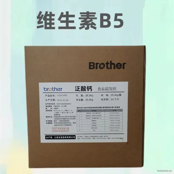 泛酸也是营养补充剂。主要用于食品添加剂及饲料添加剂,是人体和动物维持正常生理不可缺少的微量物质。除特殊营养食品外,使用量须在1%(以钙计)以下。奶粉强化时为10mg/100g;烧酒、威士忌酒中添加0.02%可增qiang风味;蜂蜜中添加0.02%可防zhi冬季结晶