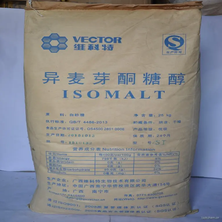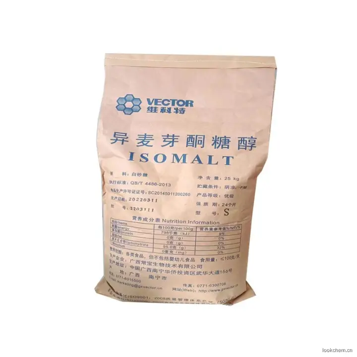 异麦芽酮糖醇是化学物质,白色无臭结晶,味甜,甜度约为蔗糖的45%~65%,稍吸湿。