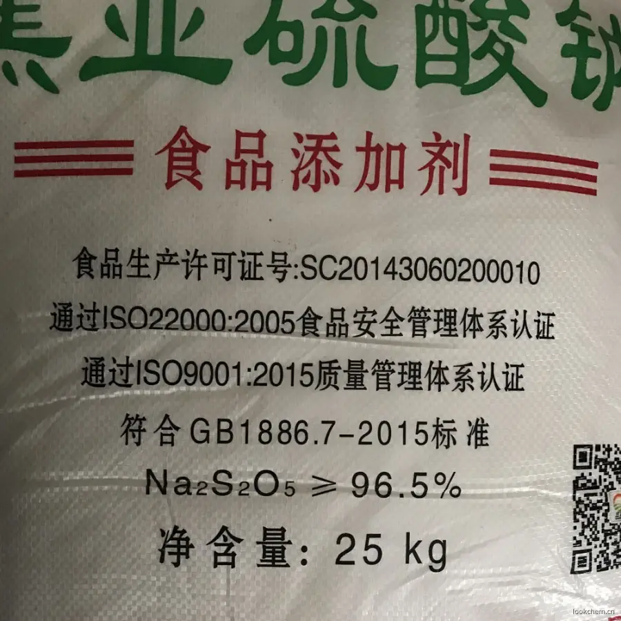 焦亚硫酸钠用于生产保险粉,磺胺二甲基嘧啶、安乃近,己内酰胺等;用于氯仿,苯丙砜和苯甲醛的净化。照相工业用作定影剂的配料;香料工业用于生产香草醛;用作酿造工业防腐剂;橡胶凝固剂和棉布漂白后脱氯剂;有机中间体;用于印染、制革;用作还原剂;用作电镀业、油田的废水处理以及用作矿山的选矿剂等;在食品加工中作防腐剂、漂白剂、疏松剂。焦亚硫酸钠(Na2S2O5),是一种无机化合物,为白色或黄色结晶,带有强烈的刺激性气味,溶于水,水溶液呈酸性,与强酸接触则放出二氧化硫并生成相应的盐类。 久置空气中,则氧化成硫酸钠,故焦亚硫酸钠不能久存