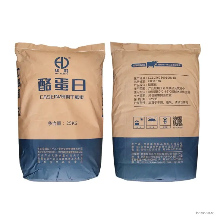 酪蛋白是白色至淡黄色颗粒、粉末或片状。无臭,无味或有轻微香气和滋味,不溶于水和醇。溶于碱液而成酪蛋白酸盐。酪蛋白是牛奶中的主要蛋白质,由α、β、γ和κ酪蛋白组成,其氨基酸组成和电泳行为有所不同。营养价值较高,经酸化或凝乳酶处理后沉淀。α和β酪蛋白有较多的丝氨酸被磷酸化,形成钙结合位点。