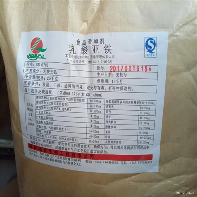 绿白色结晶性粉末或结晶。稍有异臭,略有甜的金属味。本品受潮或其水溶液氧化后变为含正铁盐的黄褐色。光照可促进氧化。铁离子与其他食品添加剂反应易着色。溶于水,成带绿色的透明液体,呈酸性。几乎不溶于乙醇。广泛应用于食品、饮料、乳制品、食盐等营养增补剂(铁质强化剂)。乳酸亚铁是食品和饲料添加剂