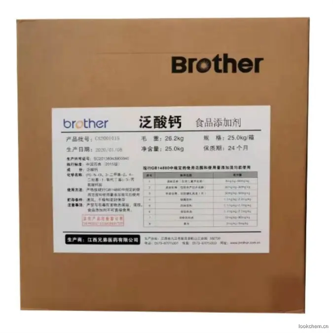 泛酸也是营养补充剂。主要用于食品添加剂及饲料添加剂,是人体和动物维持正常生理不可缺少的微量物质。除特殊营养食品外,使用量须在1%(以钙计)以下。奶粉强化时为10mg/100g;烧酒、威士忌酒中添加0.02%可增qiang风味;蜂蜜中添加0.02%可防zhi冬季结晶