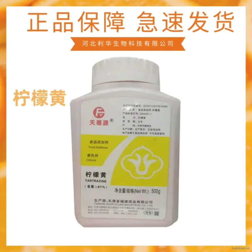 - C.I.酸性黄23;肼黄;酒石黄;食用合成染料柠檬黄;食用柠檬黄;食用色素黄色5号;酒石磺;柠檬黄