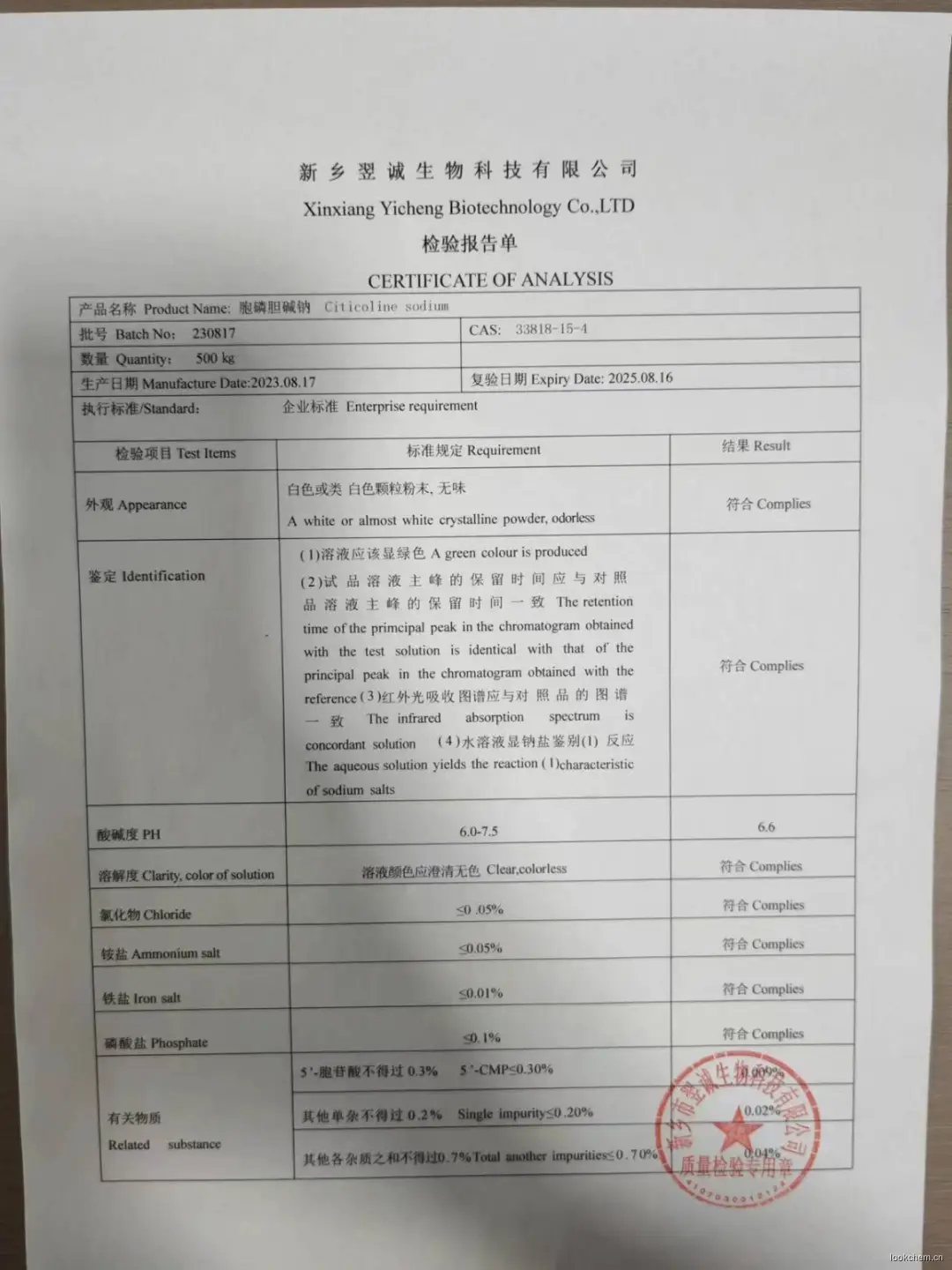 英文名称:Citicoline sodium