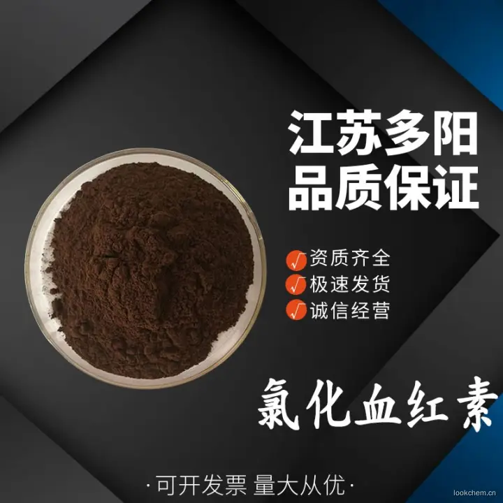 - Ferrate(2-),chloro[7,12-diethenyl-3,8,13,17-tetramethyl-21H,23H-porphine-2,18-dipropanoato(4-)-N21,N22,N23,N24]-,dihydrogen, (SP-5-13)-; Ferrate(2-),chloro[7,12-diethenyl-3,8,13,17-tetramethyl-21H,23H-porphine-2,18-dipropanoato(4-)-kN21,kN22,kN23,kN24]-, dihydrogen, (SP-5-13)-(9CI); Iron, chloro[dihydrogen3,7,12,17-tetramethyl-8,13-divinyl-2,18-porphinedipropionato(2-)]- (8CI);Protohemin IX (6CI); 21H,23H-Porphine-2,18-dipropanoic acid,7,12-diethenyl-3,8,13,17-tetramethyl-, iron complex; 1,3,5,8-Tetramethyl-2,4-divinylporphine-6,7-dipropionicacid ferrichloride; Chloro[dihydrogen3,7,12,17-tetramethyl-8,13-divinyl-2,18-porphinedipropionato(2-)]iron;Chlorohemin; Chloroprotoferriheme; Chloroprotohemin; Ferric hemin; Ferriheme;Ferriheme chloride; Ferriporphyrin chloride; Ferriprotoporphyrin;Ferriprotoporphyrin IX; Ferriprotoporphyrin IX chloride; Hemin; Hemin IX; Heminchloride; Iron(III) protoporphyrin chloride; KJB 003; Panhematin;Protoferriheme; Protohemin; Protohemin chloride; Teichmann'