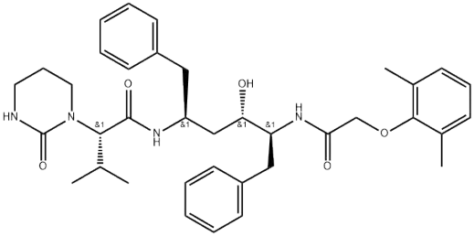 - 1(2H)-Pyrimidineacetamide,N-[(1S,3S,4S)-4-[[(2,6-dimethylphenoxy)acetyl]amino]-3-hydroxy-5-phenyl-1-(phenylmethyl)pentyl]tetrahydro-a-(1-methylethyl)-2-oxo-, (aS)- (9CI);1(2H)-Pyrimidineacetamide,N-[4-[[(2,6-dimethylphenoxy)acetyl]amino]-3-hydroxy-5-phenyl-1-(phenylmethyl)pentyl]tetrahydro-a-(1-methylethyl)-2-oxo-, [1S-[1R*(R*),3R*,4R*]]-;A157378.0;ABT 378;Aluviran;Koletra;1(2H)-Pyrimidineacetamide,N-[(1S,3S,4S)-4-[[2-(2,6-dimethylphenoxy)acetyl]amino]-3-hydroxy-5-phenyl-1-(phenylmethyl)pentyl]tetrahydro-a-(1-methylethyl)-2-oxo-, (aS)-;Intermediates of Lopinavir;