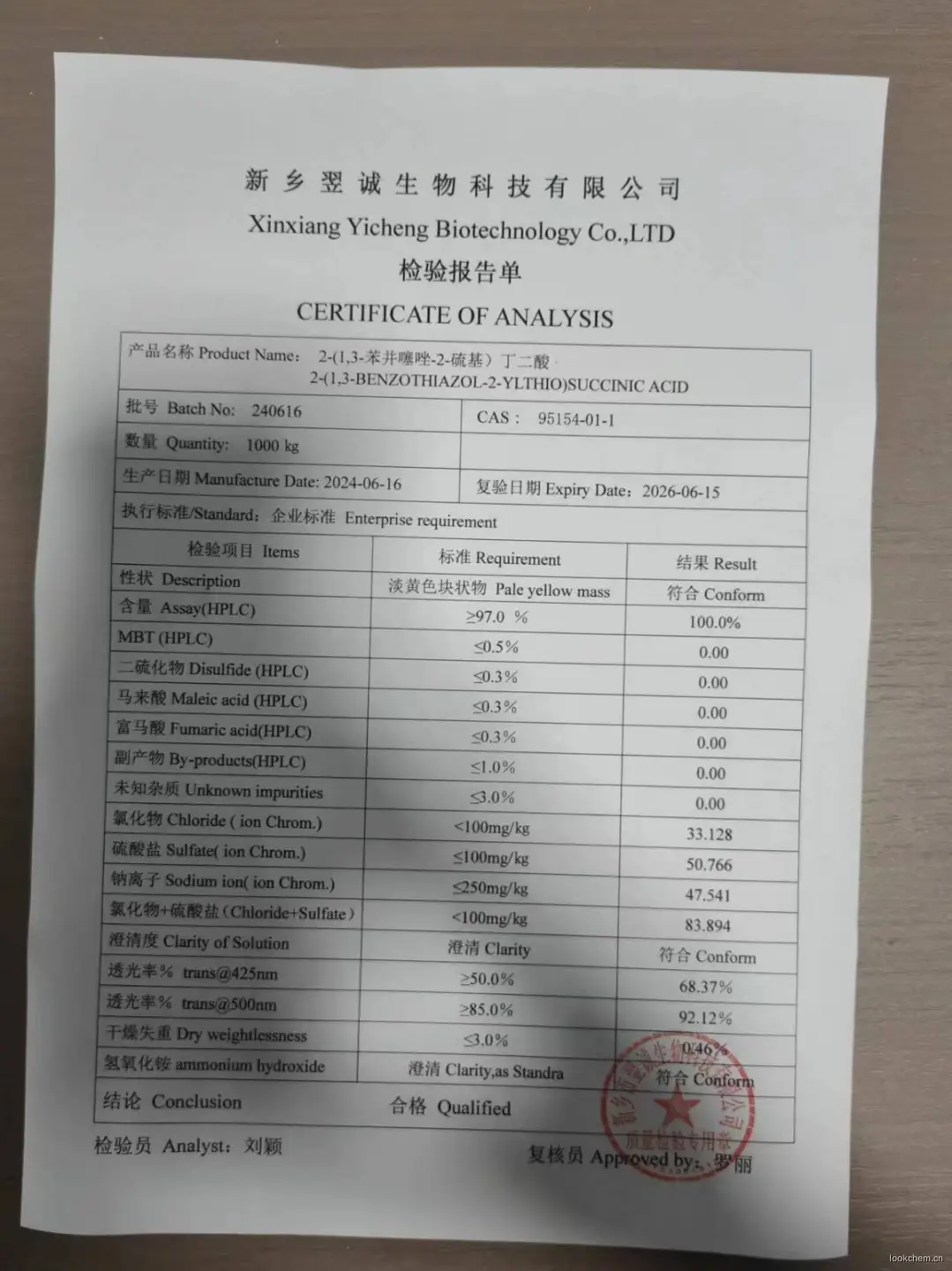 - 苯并噻唑-2-巯基丁二酸