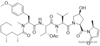 微胶蛋白(microcolins)和大肌藻胺 D(majusculamide D)是从海洋蓝细菌 Moorea producens(以前为大肌藻 Lyngbya majuscula)中分离得到的一系列具有相似结构的化合物。自1988年以来,microcolin A-D 和 majusculamide D 被分离出来,随后的生物学研究表明,这些化合物在体外对不同类型的人类癌细胞表现出广泛的抗肿瘤活性。2019年,共分离到9株新型 microcolin E-M,并显示出对肺癌细胞的显著细胞毒活性因此,以往的研究提示了 microcolins 在探索抗癌策略方面的潜在可能性